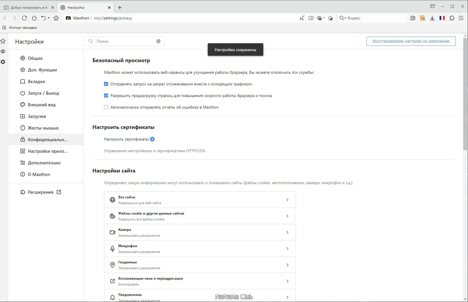 - Расширенные функции безопасности, включая блокировку трекеров, фишинговых сайтов и вредоносной рекламы.