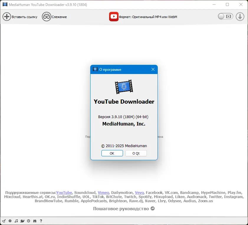 MediaHuman YouTube Downloader — это надежное решение для пользователей, которым необходимо сохранять контент из интернета для оффлайн-просмотра или прослушивания. Программа поддерживает широкий спектр сервисов, включая YouTube, Vimeo, Rutube, Dailymotion, Facebook, ВКонтакте и SoundCloud. Благодаря интуитивному интерфейсу и продуманной архитектуре, загрузка происходит быстро и без сбоев. Приложение позволяет выбирать качество видео — от стандартного HD до 8K, а также сохранять аудиодорожку в формате MP3, AAC или других поддерживаемых кодеках.