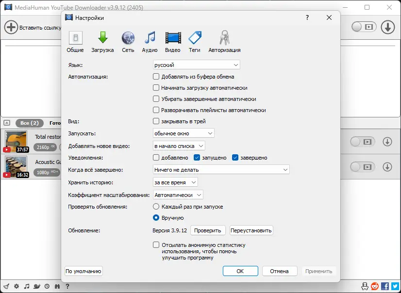 Программа поддерживает как одиночные загрузки, так и массовое скачивание контента с каналов и плейлистов.