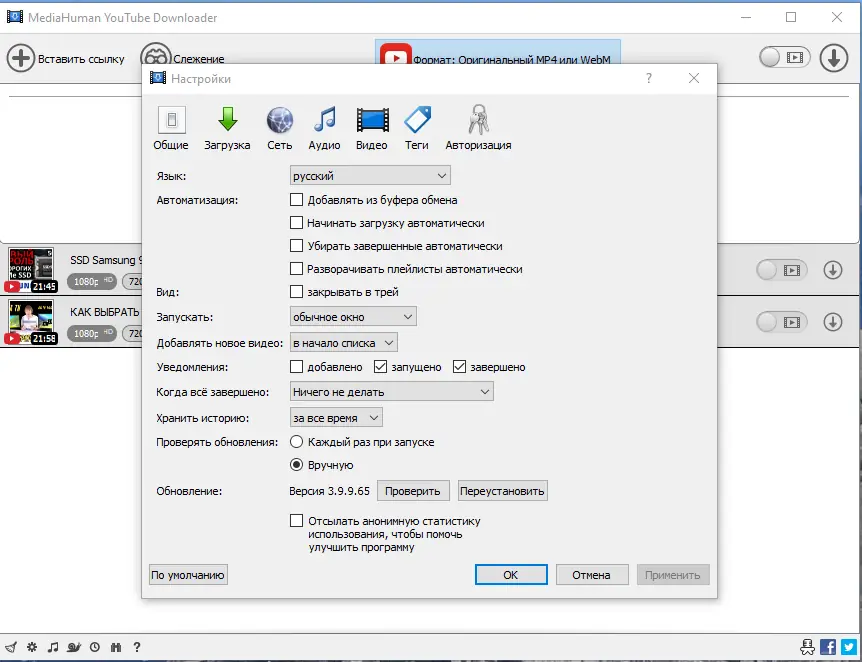 - Возможность скачивания целых плейлистов и каналов с автоматическим отслеживанием новых роликов