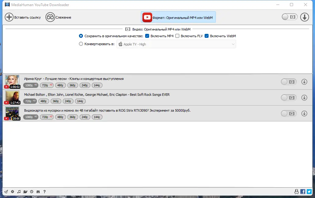 MediaHuman YouTube Downloader — это программное обеспечение, предназначенное для эффективного скачивания контента из интернета. Приложение поддерживает не только YouTube, но и такие ресурсы, как Vimeo, Rutube, Dailymotion, SoundCloud, Facebook и другие. Пользователи могут выбирать разрешение от 360p до 8K, а также загружать только аудиодорожку, что особенно удобно для создания музыкальных коллекций. Программа работает стабильно, не требует сложной настройки и подходит как новичкам, так и продвинутым пользователям.