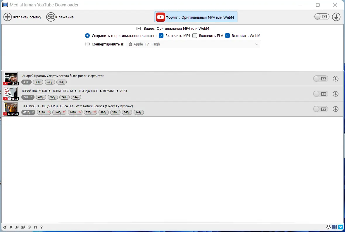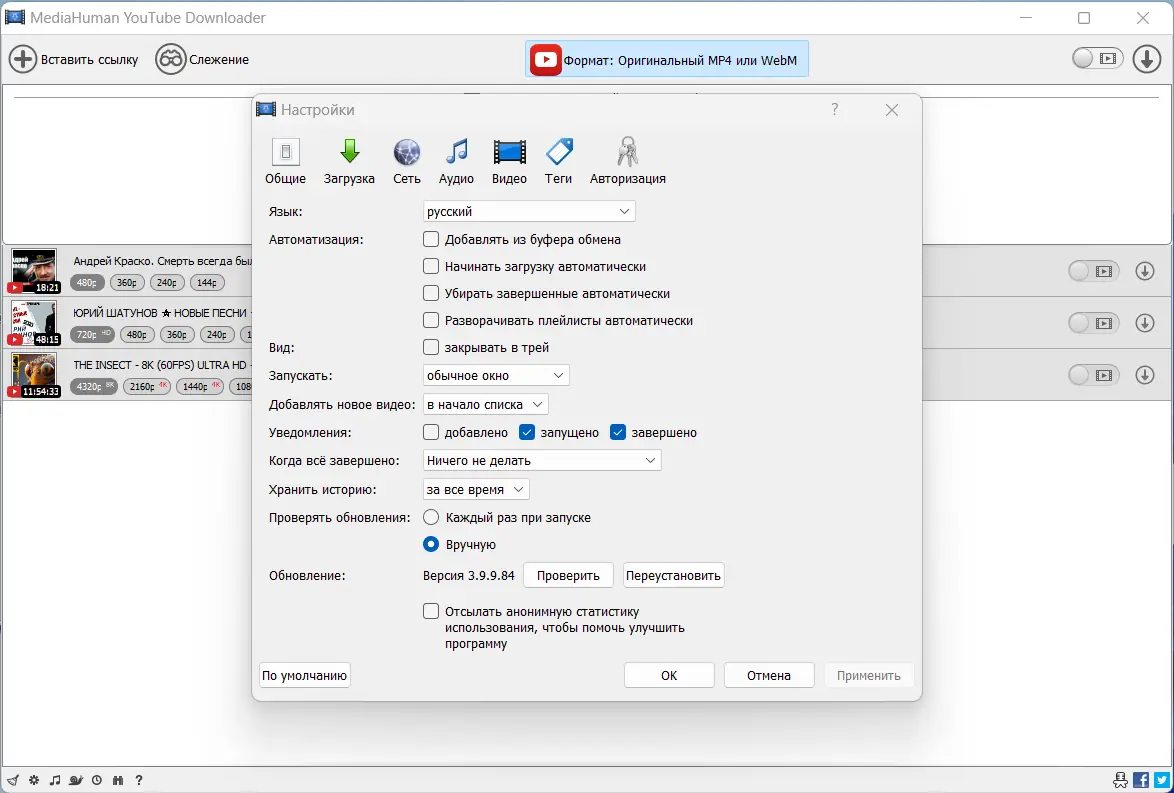 MediaHuman YouTube Downloader — это удобное приложение для загрузки видео и аудио с YouTube и других популярных платформ. Программа поддерживает высокие разрешения, включая 4K и 8K, а также позволяет сохранять контент в оригинальном качестве. Скачать можно как отдельные ролики, так и целые плейлисты, каналы, с автоматической синхронизацией новых материалов.