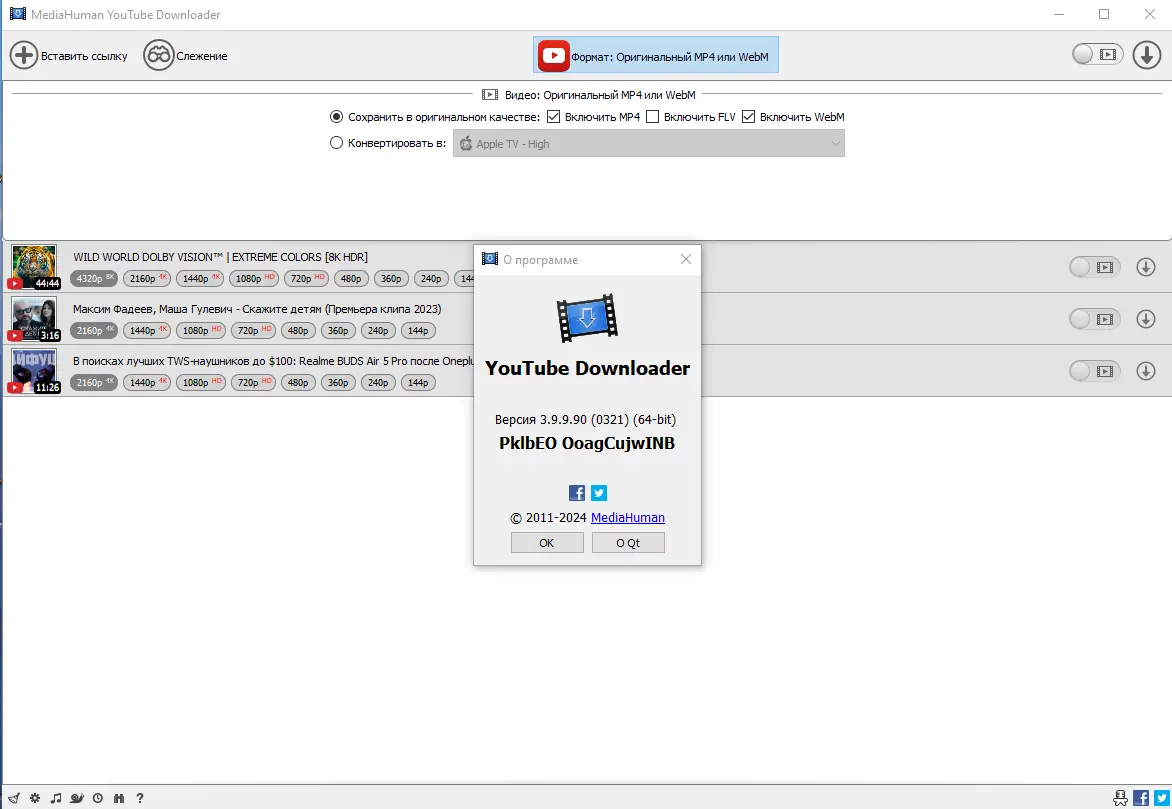MediaHuman YouTube Downloader — удобное приложение для скачивания видео и аудио с YouTube и других популярных платформ. Программа поддерживает загрузку отдельных роликов, плейлистов и целых каналов в оригинальном качестве, включая форматы HD, 4K и 8K, а также извлечение звуковой дорожки в MP3 и другие аудиоформаты. Благодаря интуитивному интерфейсу и автоматизации процессов, работа с программой не требует технических навыков.