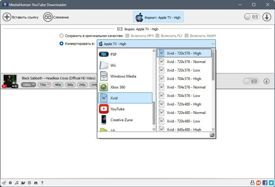 - Скачивание целых плейлистов и каналов с опцией отслеживания новых роликов