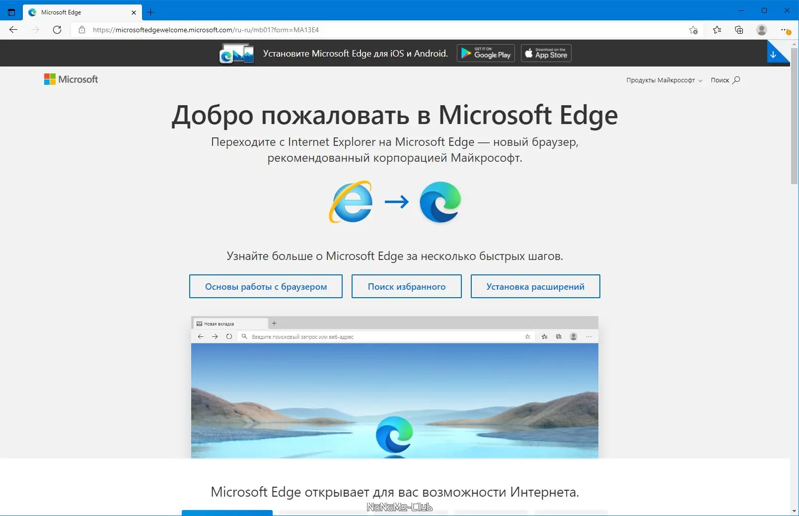 Microsoft Edge сочетает в себе мощь Chromium и фирменные технологии Microsoft для безопасного и удобного серфинга.