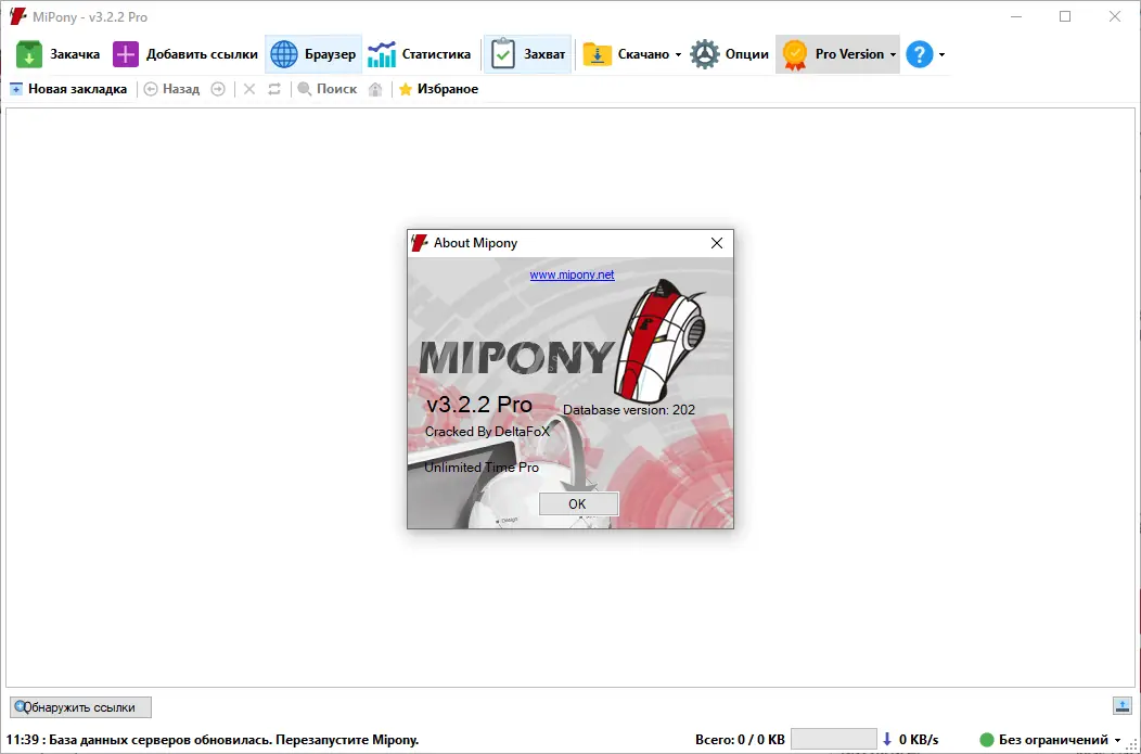MiPony — это специализированный менеджер загрузок, разработанный для автоматизации скачивания файлов с популярных файлообменников. Программа поддерживает работу с такими сервисами, как Depositfiles, Megaupload, 4shared, Mega.nz и многими другими. Она упрощает процесс загрузки, обходя ограничения, связанные с ожиданием, лимитами трафика и необходимостью ручного ввода капчи.