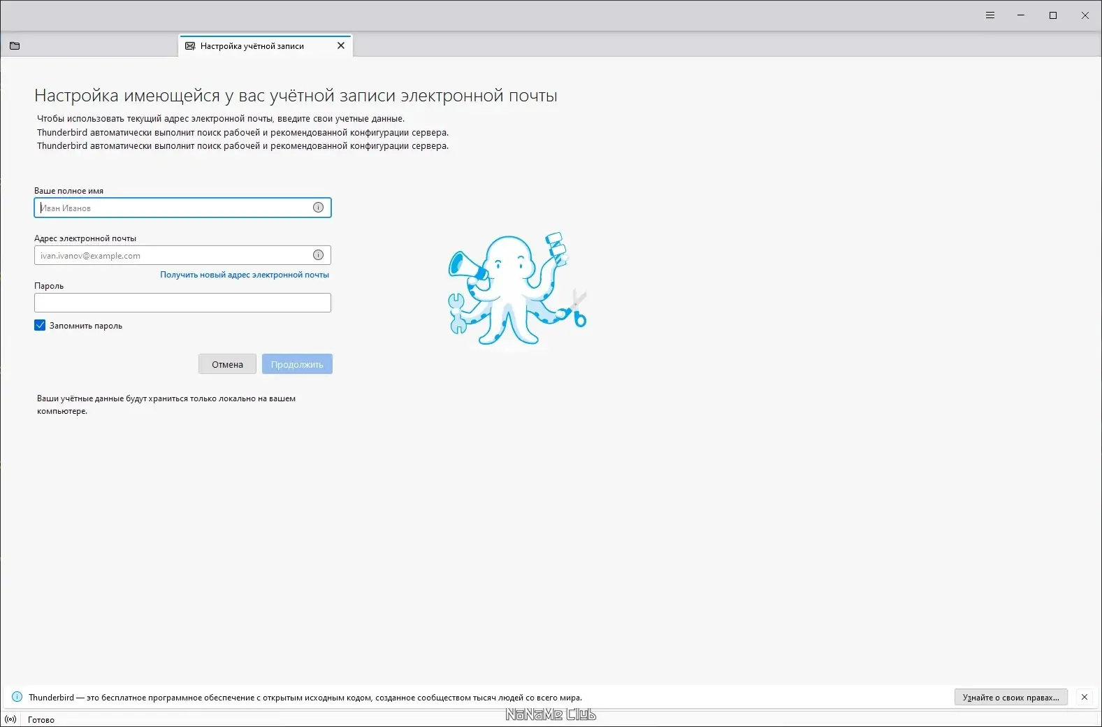 Mozilla Thunderbird — это мощный почтовый клиент с открытым исходным кодом, разработанный для удобного и безопасного доступа к электронной почте. Программа поддерживает стандартные протоколы, такие как IMAP, POP3 и SMTP, что обеспечивает стабильное соединение с большинством почтовых серверов. Благодаря встроенному мастеру настройки, пользователь может быстро добавить учётную запись, указав только имя, адрес электронной почты и пароль. Система автоматически определяет необходимые параметры подключения, что делает процесс настройки доступным даже для новичков.