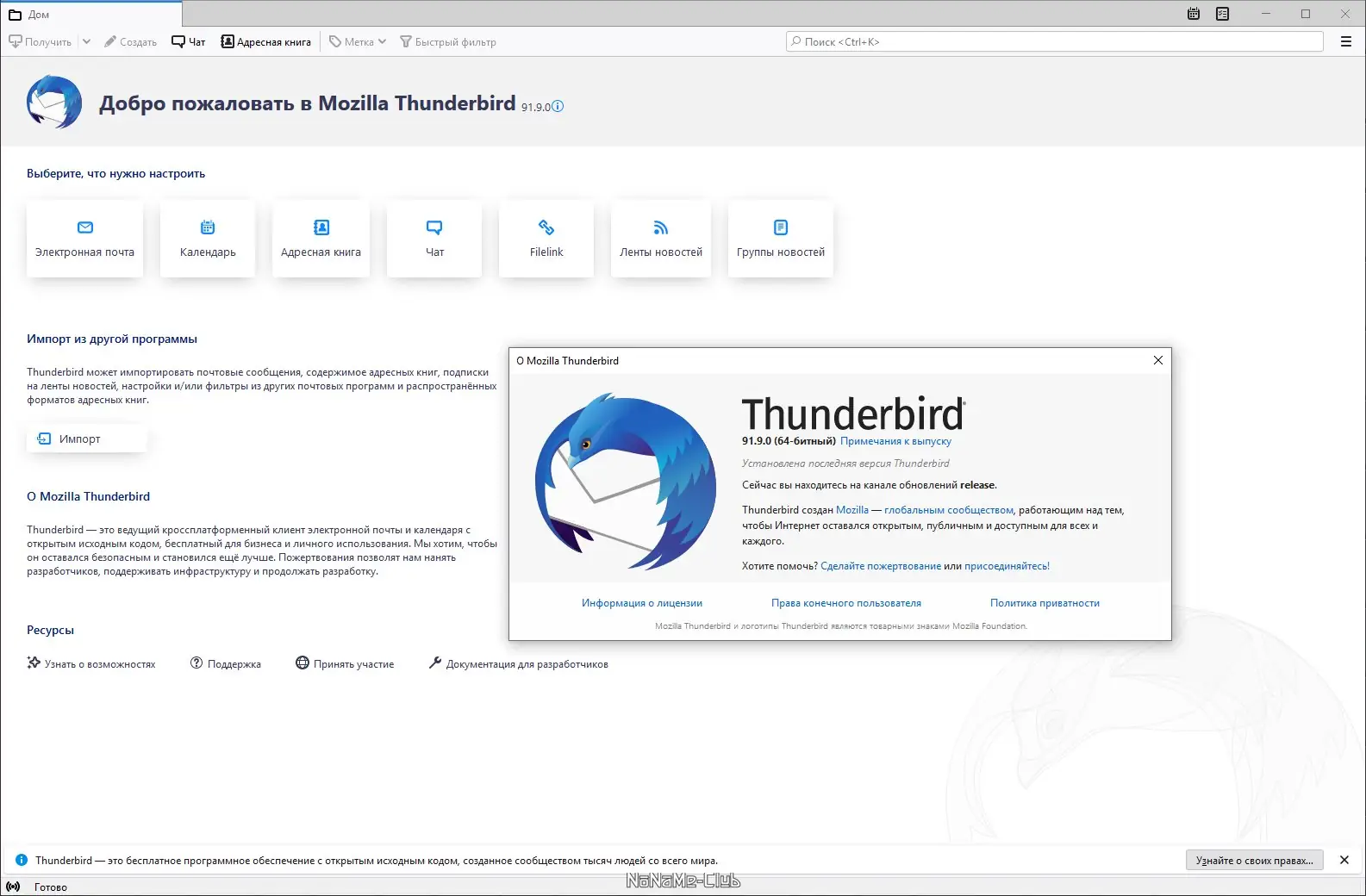 Mozilla Thunderbird — это бесплатная программа для управления электронной почтой, обеспечивающая высокий уровень безопасности, гибкую настройку и удобную работу с письмами. Приложение поддерживает множество учётных записей, предлагает интеллектуальные фильтры, мощную систему архивации и расширенные возможности поиска. Thunderbird идеально подходит для пользователей, которым важны приватность, стабильность и простота в работе с почтой.