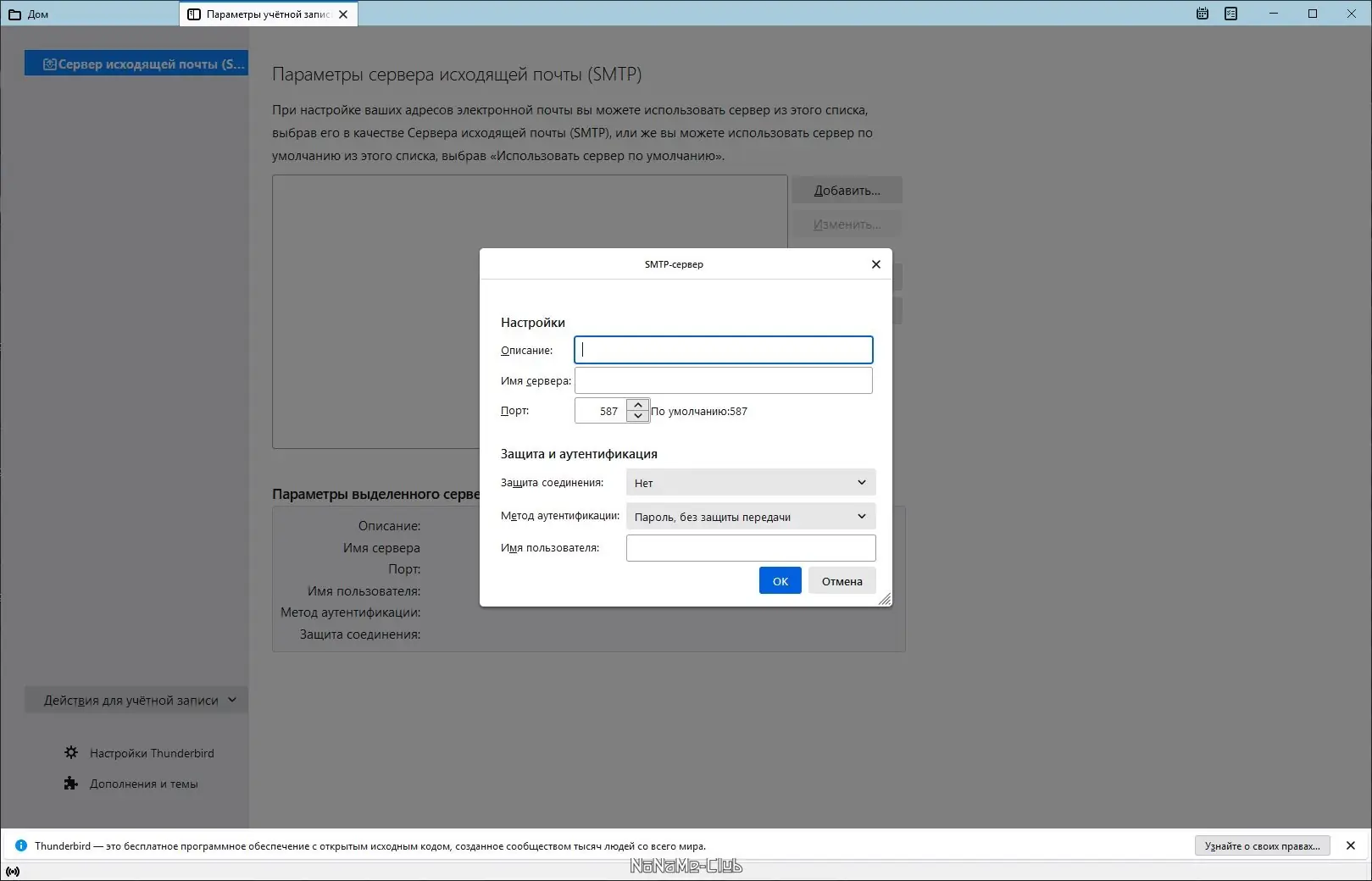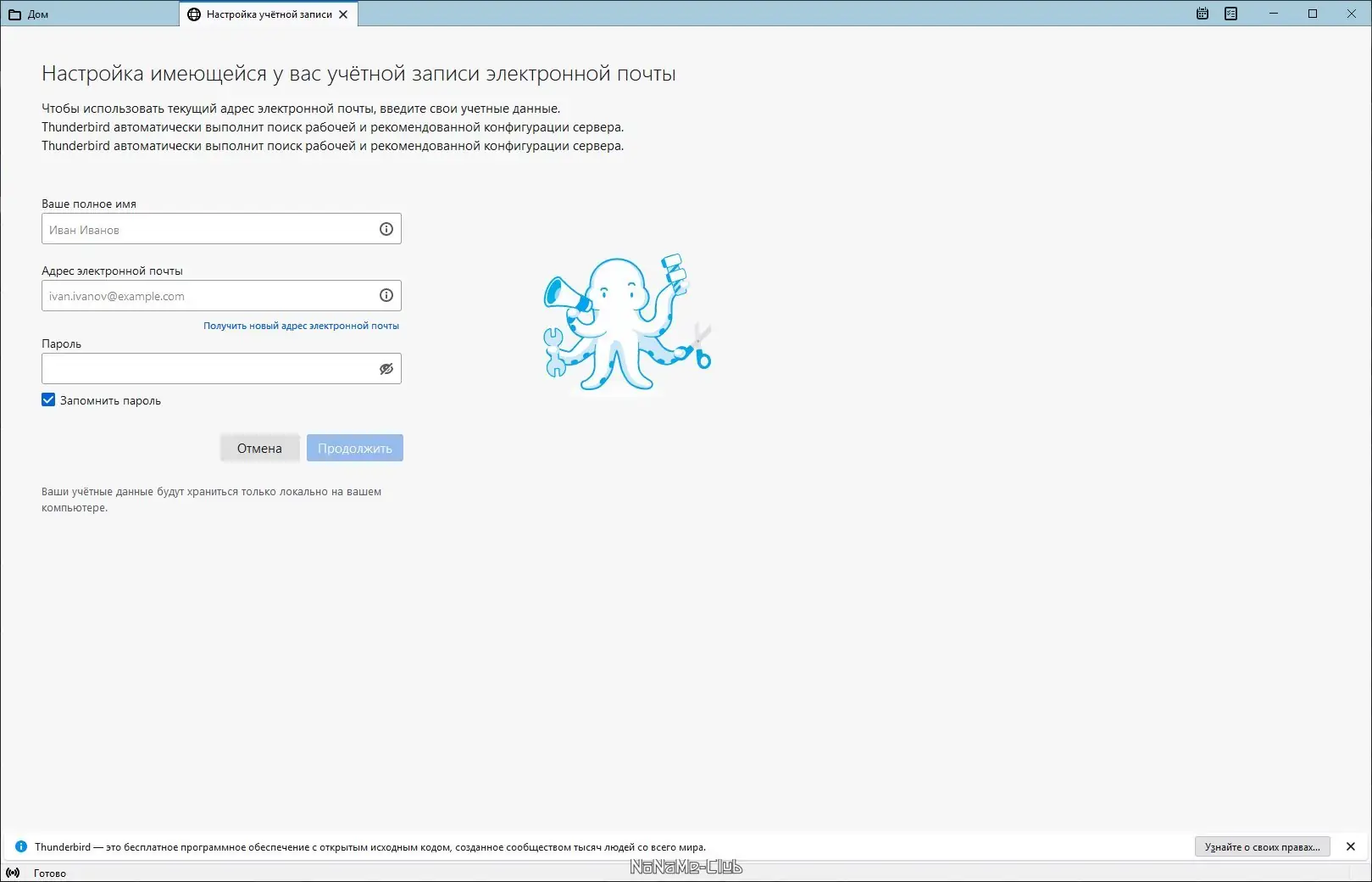 - Thunderbird автоматически определяет параметры подключения к почтовому серверу, упрощая начальную настройку учётной записи.