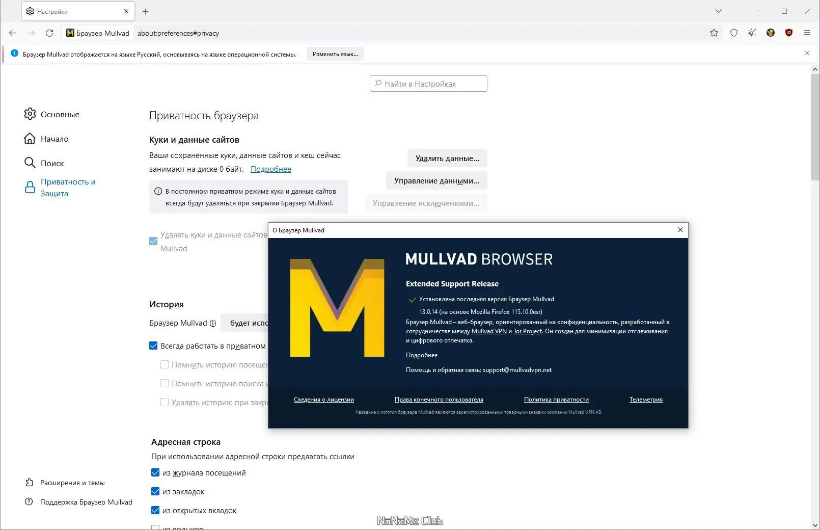 Mullvad Browser — это приватный браузер на основе Firefox ESR, разработанный с акцентом на защиту пользовательских данных. Он включает инструменты блокировки отслеживания, шифрования соединений и предотвращения идентификации. Программа подходит тем, кто стремится к анонимности, но предпочитает использовать надёжный VPN вместо сети Tor.