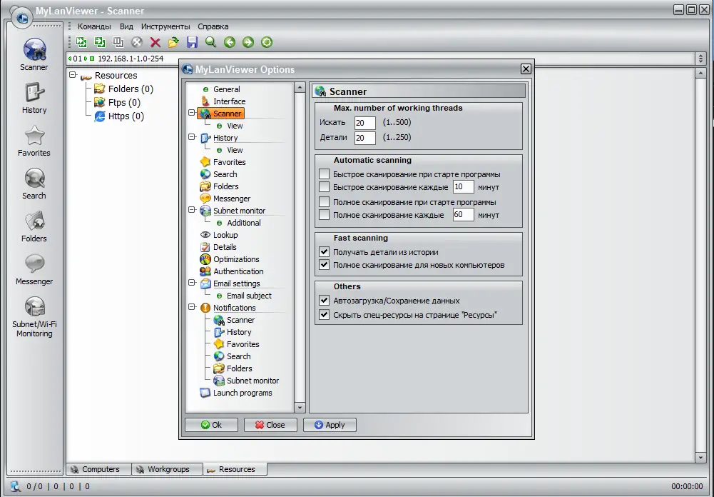 Использование MyLanViewer не требует глубоких технических знаний. После запуска приложение автоматически начинает сканирование сети, отображая найденные устройства в табличном виде. Пользователь может вручную инициировать повторное сканирование, настроить расписание или запустить поиск файлов по ключевым словам.
