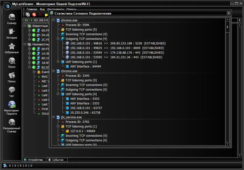 MyLanViewer предоставляет пользователям удобный способ отслеживания всех устройств, подключённых к локальной сети. Программа сканирует сеть с использованием нескольких протоколов, включая ICMP, ARP, NetBIOS и DNS, что обеспечивает высокую точность обнаружения. Каждое найденное устройство отображается с указанием имени, IP и MAC-адреса, а также статуса активности.
