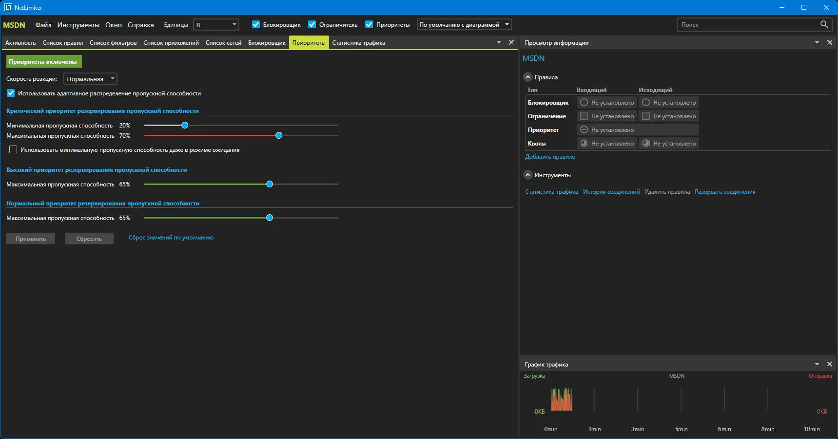 - Настройка приоритетов, позволяющая выделить больше полосы пропускания важным процессам.