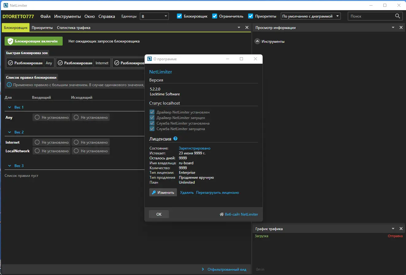 NetLimiter — это мощное программное обеспечение для управления и мониторинга сетевого трафика на персональном компьютере. Программа позволяет контролировать скорость передачи данных каждого приложения, устанавливать лимиты, блокировать соединения и анализировать использование интернета в реальном времени. Благодаря детализированной статистике и гибким настройкам, пользователь получает полный контроль над сетевыми ресурсами.