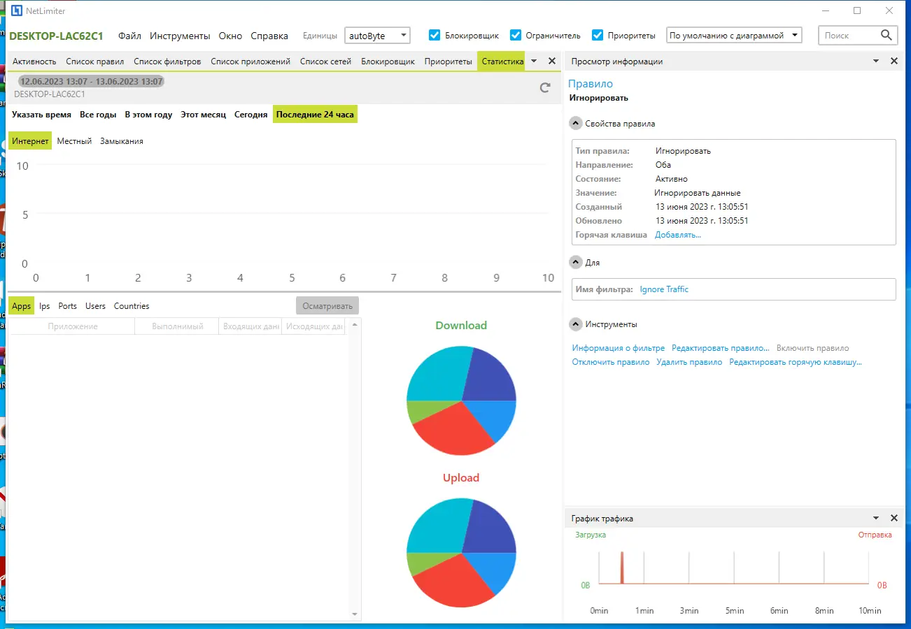 NetLimiter предоставляет возможность мониторить сетевую активность в реальном времени, отображая информацию по каждому приложению и соединению. Программа отображает скорость загрузки и выгрузки, а также накопленный объём трафика за заданный период. Это делает её незаменимым решением для пользователей, которым важно следить за расходом интернета и оптимизировать использование канала.