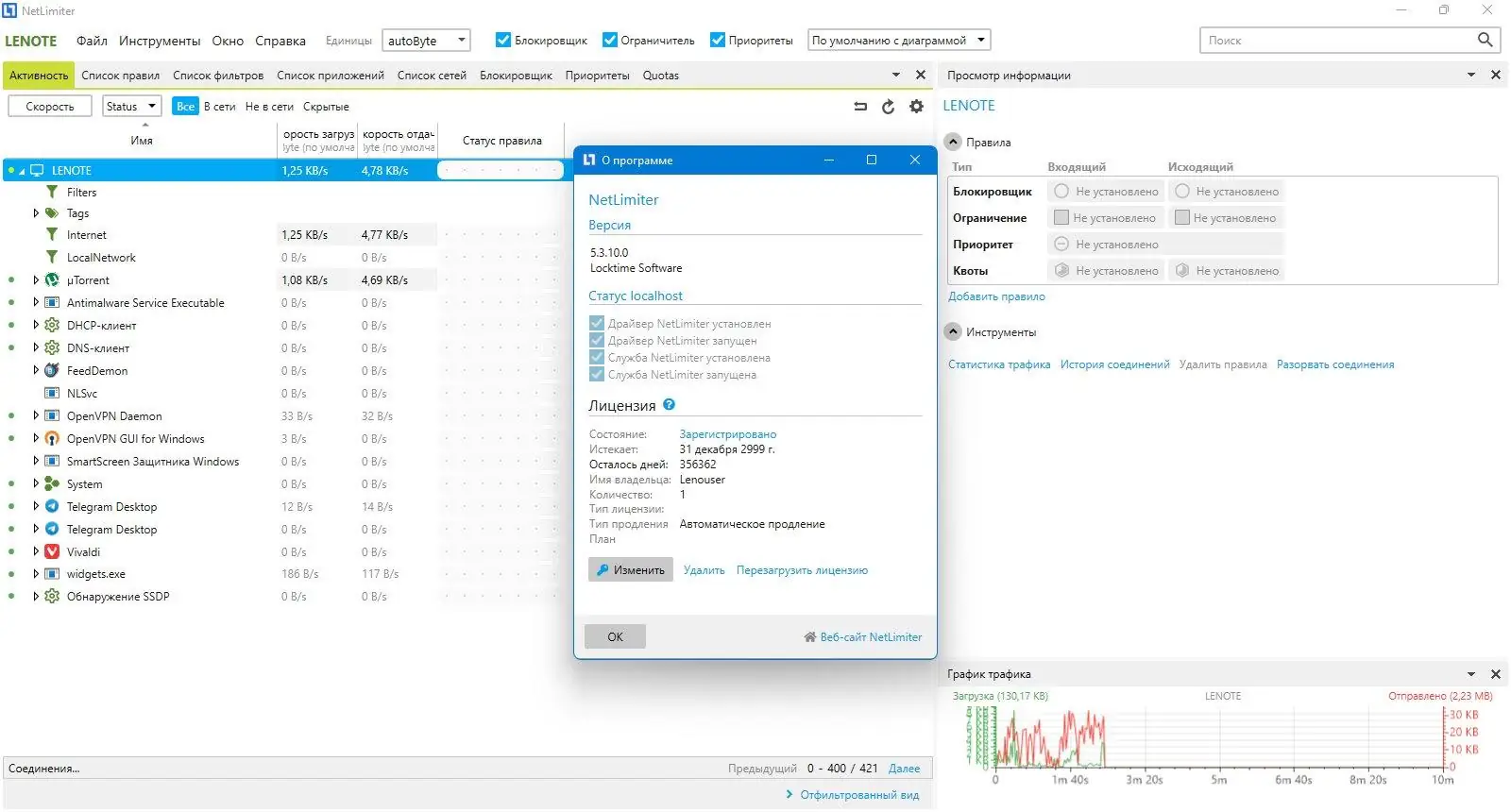 NetLimiter позволяет не только наблюдать за сетевой активностью, но и активно управлять ею, предотвращая перегрузку канала и обеспечивая приоритет для критически важных задач.