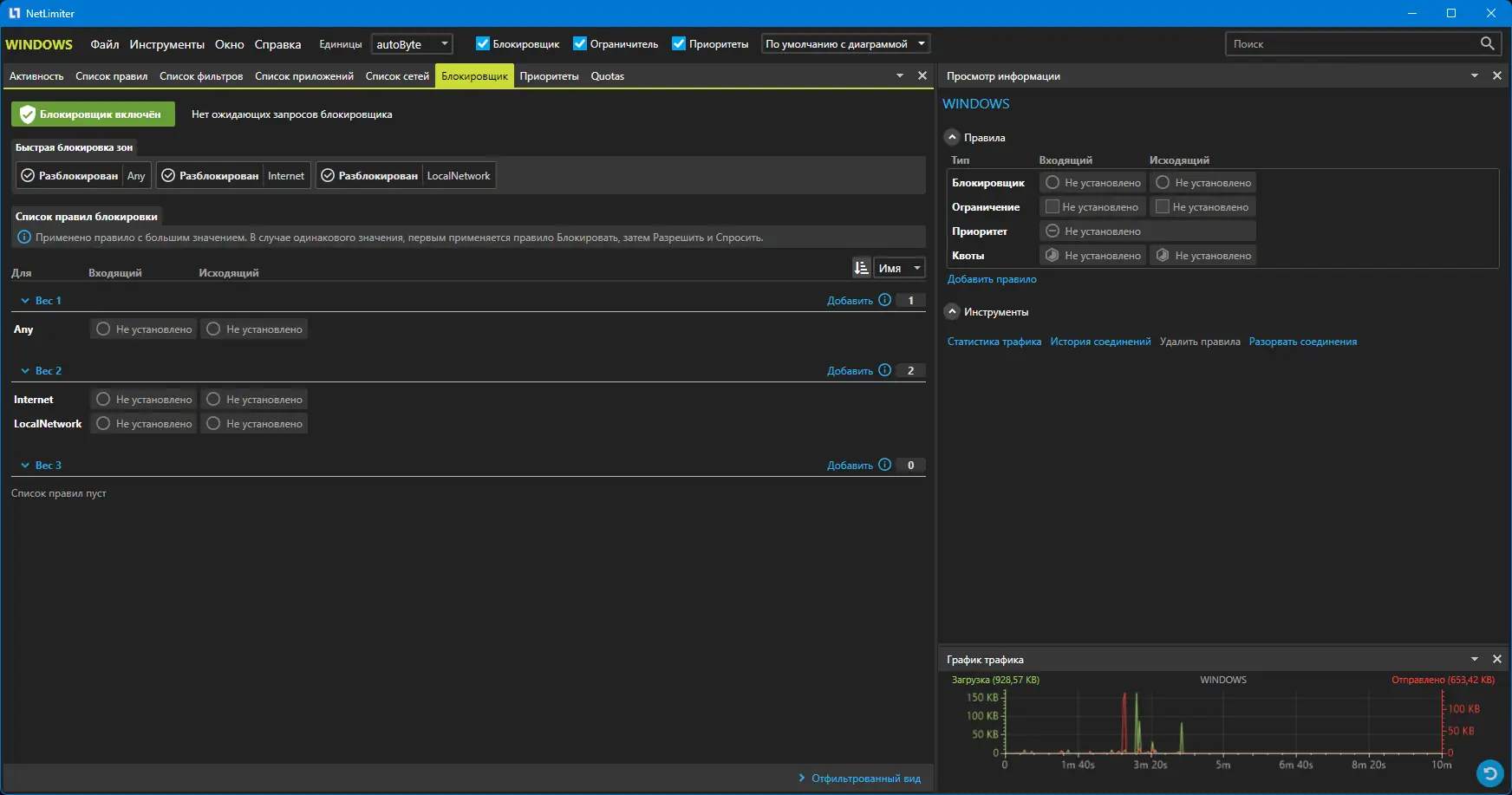 NetLimiter — это мощное программное обеспечение для контроля и мониторинга сетевого трафика на персональном компьютере. Программа позволяет отслеживать активность каждого приложения, использующего интернет-соединение, и устанавливать лимиты на скорость загрузки и отдачи данных. Это делает NetLimiter незаменимым инструментом для пользователей, стремящихся оптимизировать использование интернет-ресурсов и избежать перегрузки канала связи.