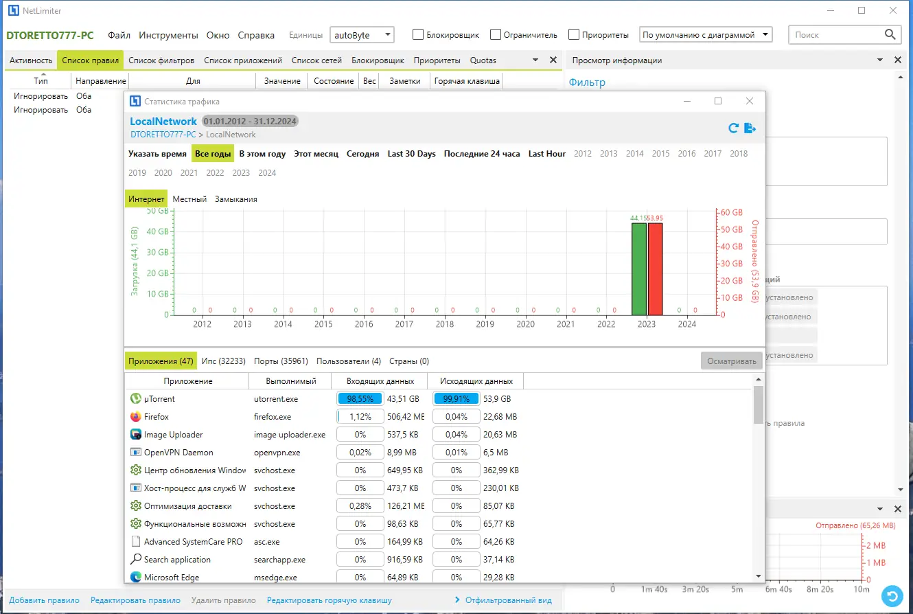 NetLimiter предоставляет пользователям полный контроль над сетевыми подключениями на компьютере. Каждое приложение, использующее интернет, отображается в интерфейсе с детализацией по входящему и исходящему трафику. Это позволяет оперативно выявлять процессы, которые потребляют чрезмерный объём данных, и корректировать их поведение. Программное обеспечение работает в фоновом режиме, не замедляя систему и не требуя постоянного вмешательства.