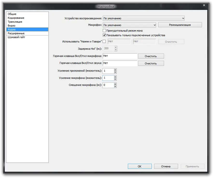 - Поддержка множества источников видео и звука, включая окна приложений, мониторы и устройства ввода