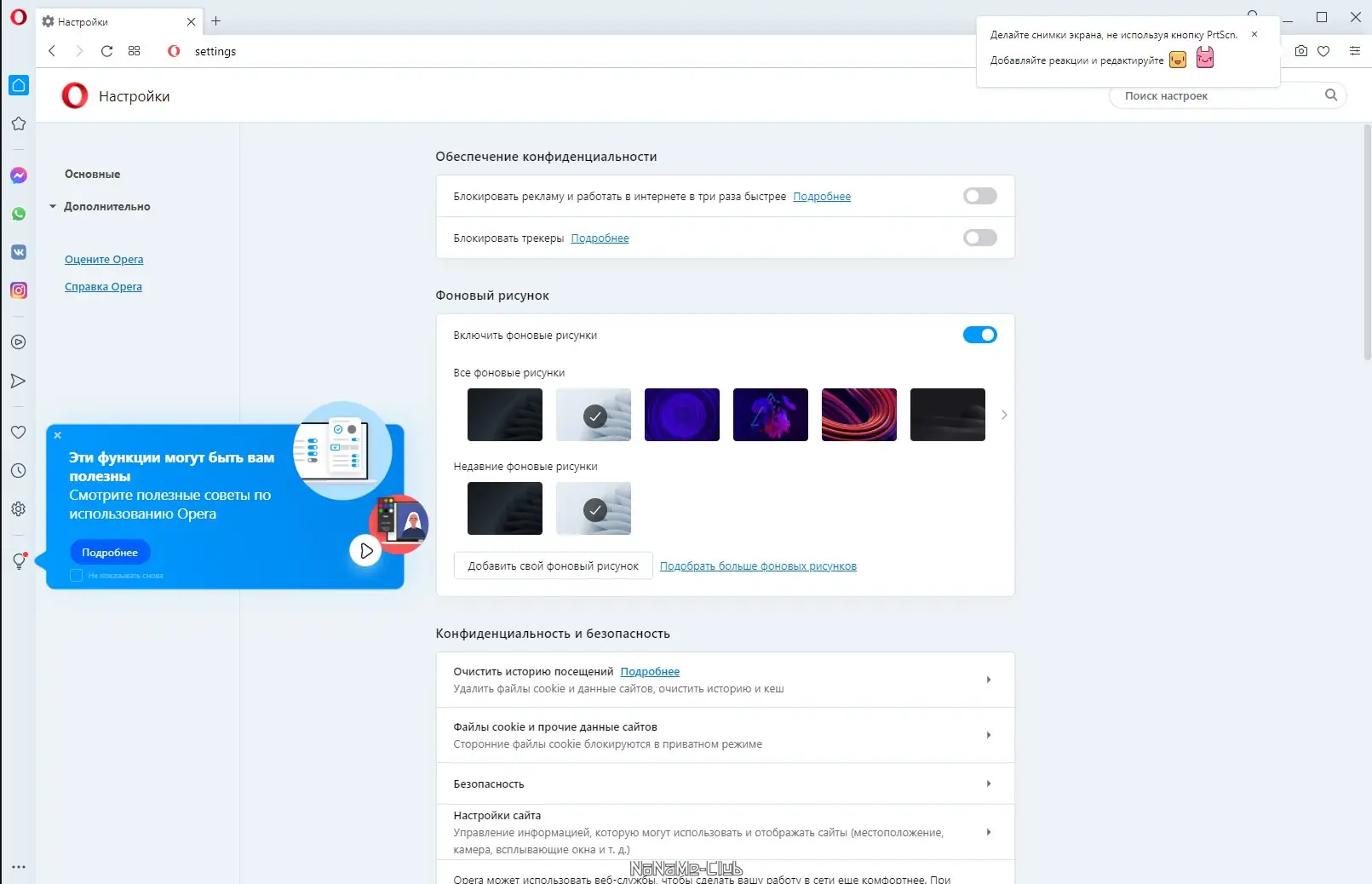 - Встроенный блокировщик рекламы и защита от фишинга повышают уровень безопасности.