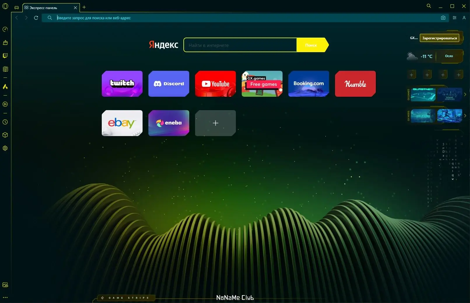 Opera GX — это не просто браузер, а полноценная платформа для геймеров, созданная на базе движка Opera с дополнительными функциями, направленными на улучшение пользовательского опыта. Программа ориентирована на тех, кто ценит производительность, безопасность и персонализацию. Интерфейс выполнен в темной геймерской тематике, но при этом поддерживает гибкую настройку цветовой палитры, включая границы кнопок, разделительные линии и иконки.