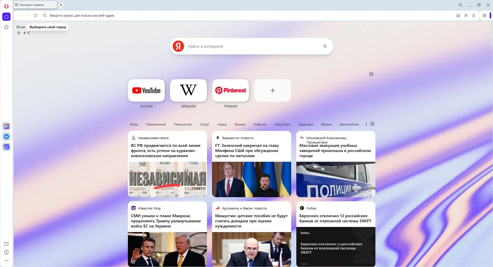 - Рекомендации на стартовой странице предлагают актуальные новости и развлекательный контент