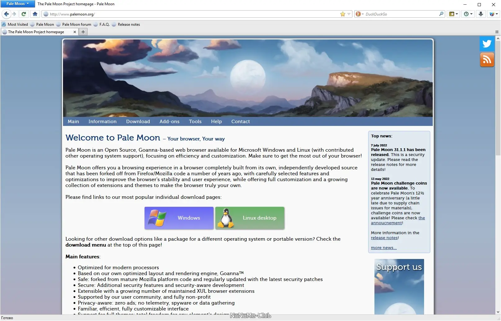 - Поддержка эксклюзивных аддонов и визуальных стилей для Pale Moon