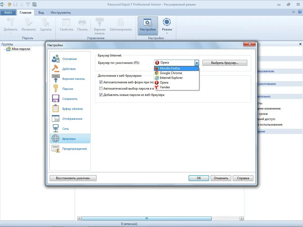 - Возможность автозаполнения и перетаскивания паролей через панель