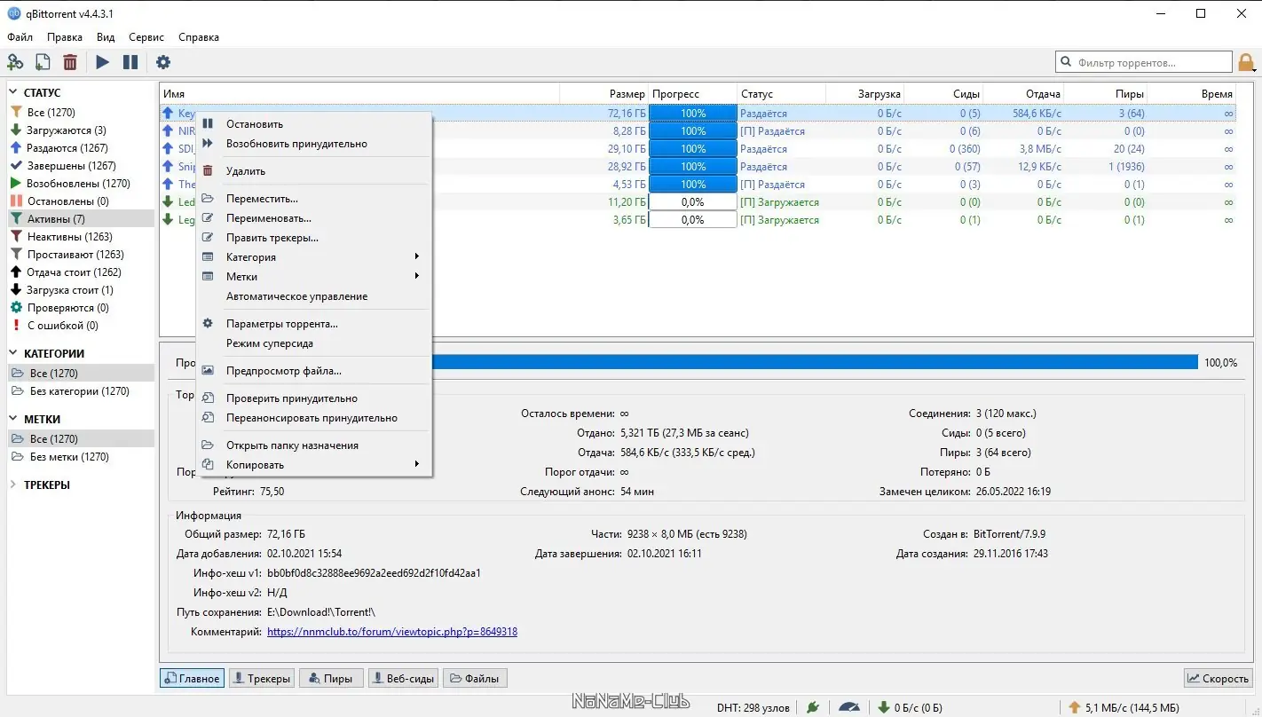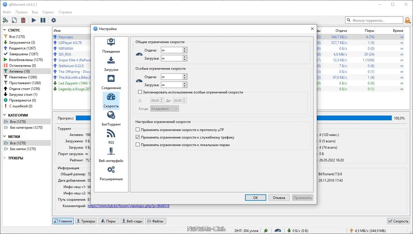 - Поддержка DHT, PeX, LPD и других современных технологий для ускорения обмена данными между пирами