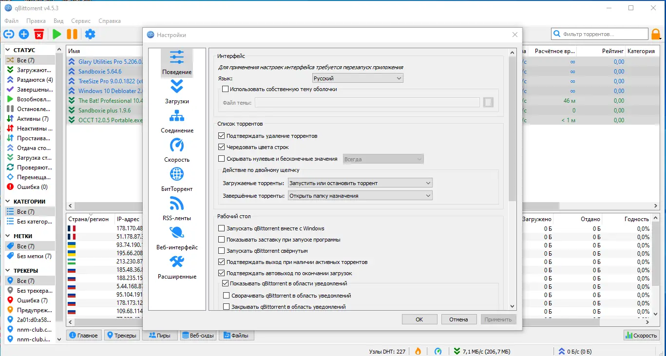 - Программа поддерживает фильтрацию IP-адресов, что повышает безопасность соединения и защищает от нежелательных пиров.
