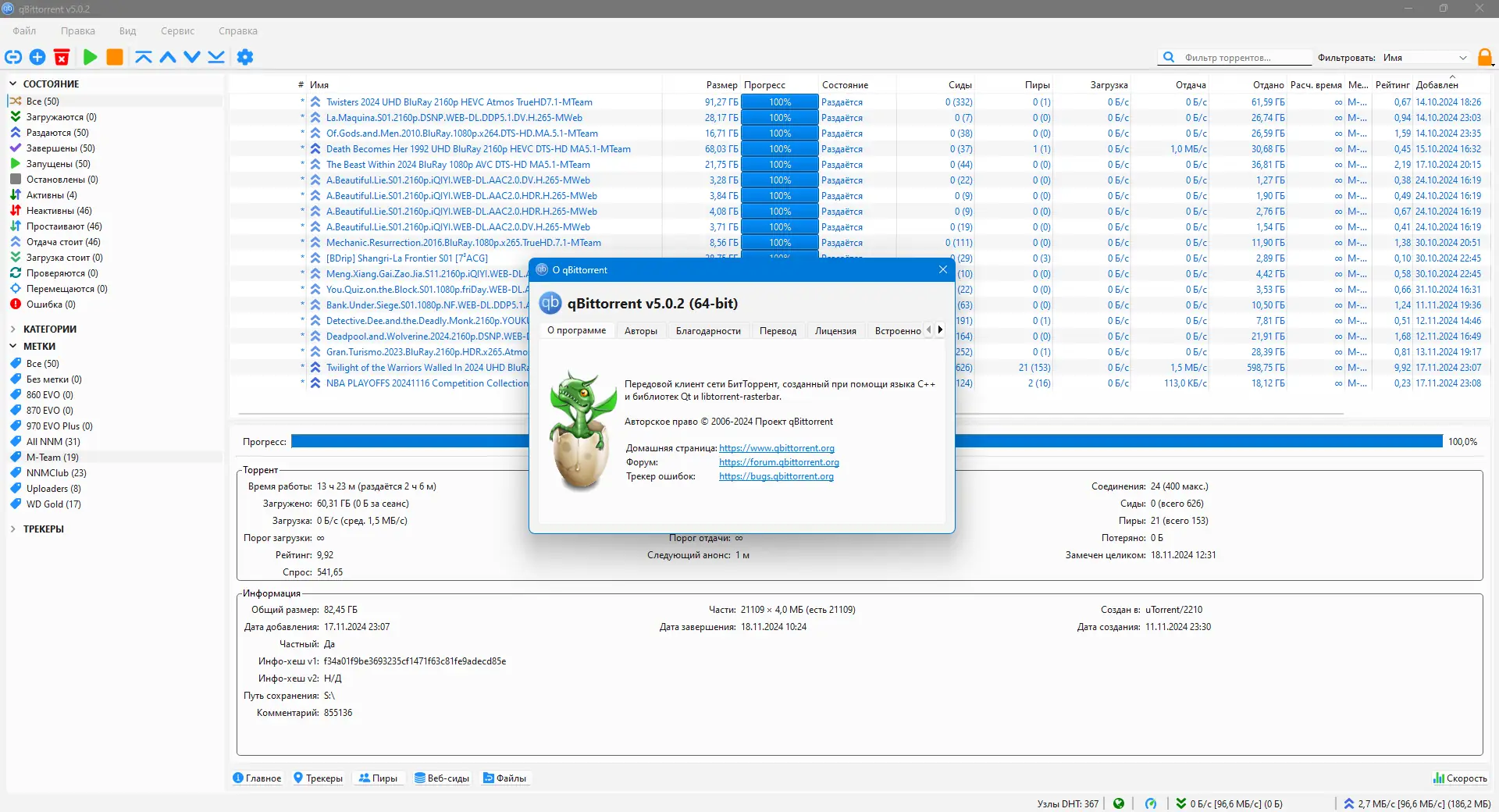 qBittorrent представляет собой современное решение для пользователей, которым необходим надёжный инструмент для загрузки контента через сеть BitTorrent. Программное обеспечение разработано с использованием технологий C++ и библиотеки libtorrent-rasterbar, что обеспечивает высокую стабильность и производительность. Графическая оболочка построена на фреймворке Qt, что делает интерфейс лёгким и кроссплатформенным. Поддержка множества операционных систем позволяет использовать приложение на различных устройствах, включая Windows, Linux и macOS.