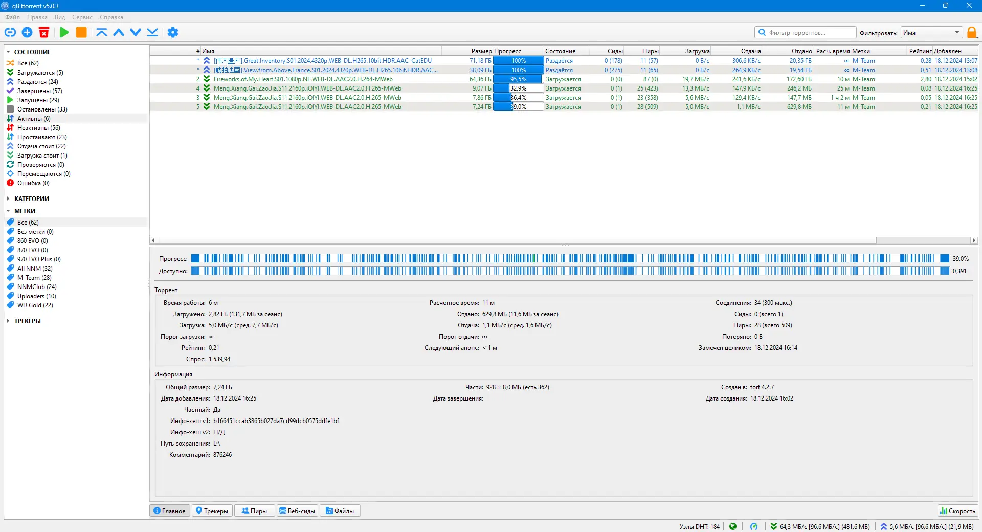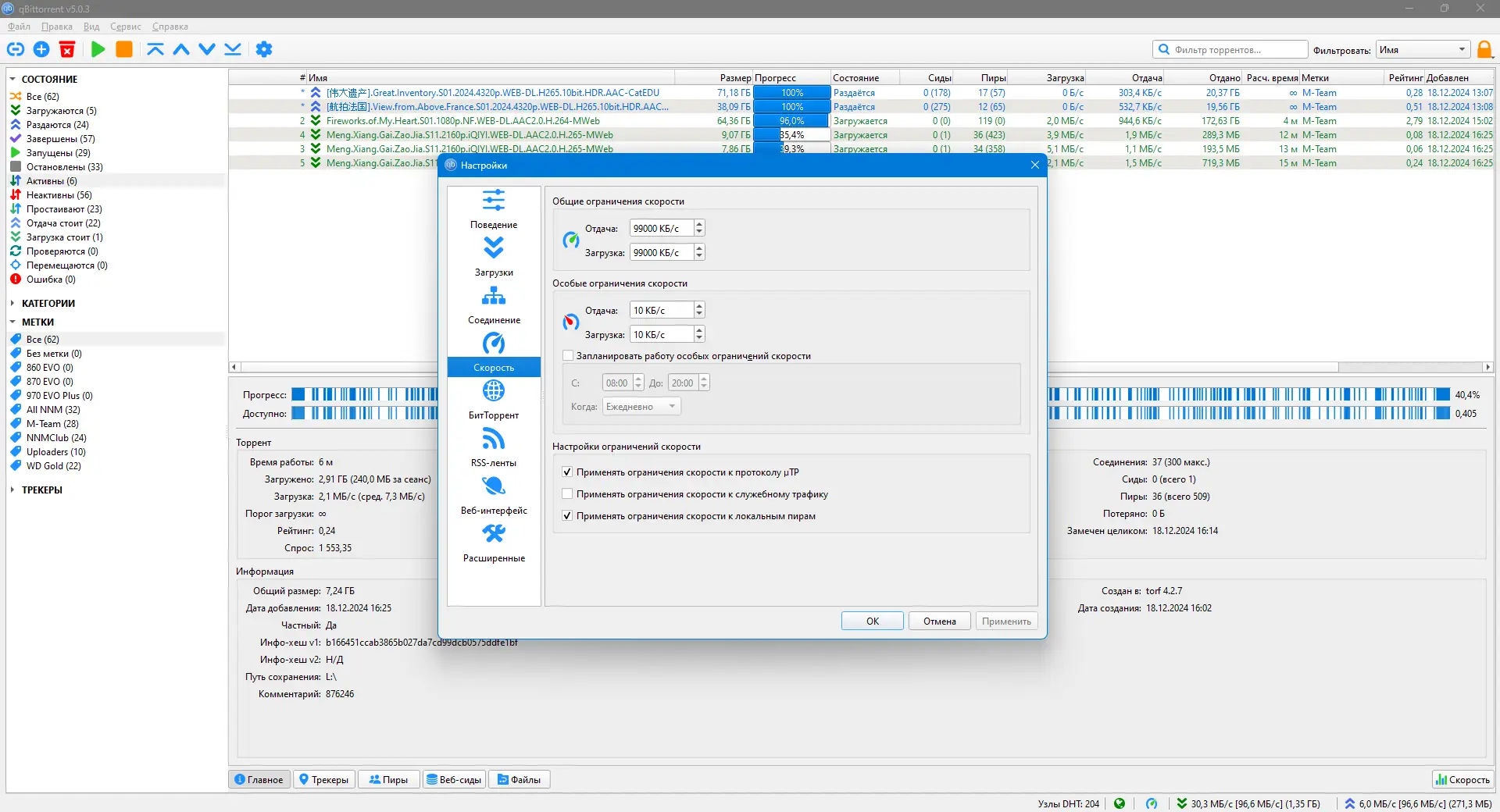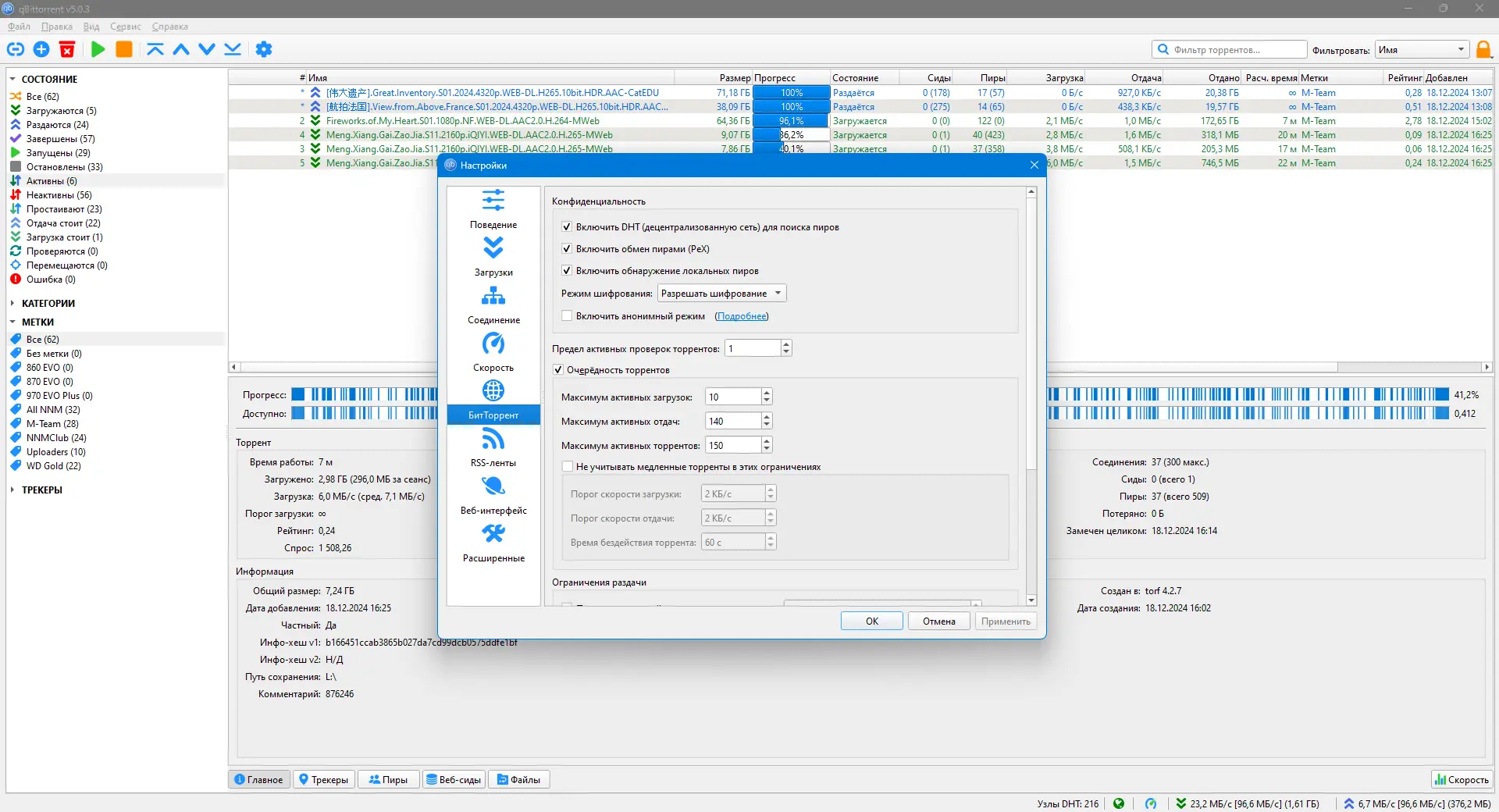 Использование qBittorrent не требует глубоких технических знаний. После установки достаточно добавить торрент-файл или magnet-ссылку, после чего начнётся процесс загрузки. Интерфейс интуитивно понятен: все активные раздачи отображаются в виде списка с детальной статистикой по скорости, прогрессу и количеству пиров. Через контекстное меню можно задавать приоритеты файлам, приостанавливать загрузку или управлять ограничением скорости.