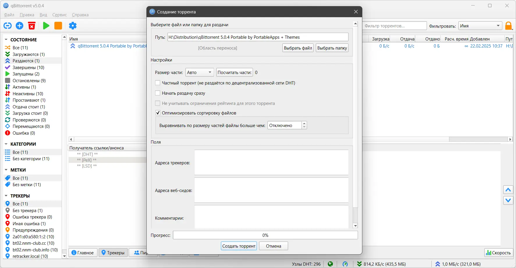 Программа совместима с протоколами DHT, PeX и LPD, что улучшает обнаружение пиров и ускоряет процесс раздачи.