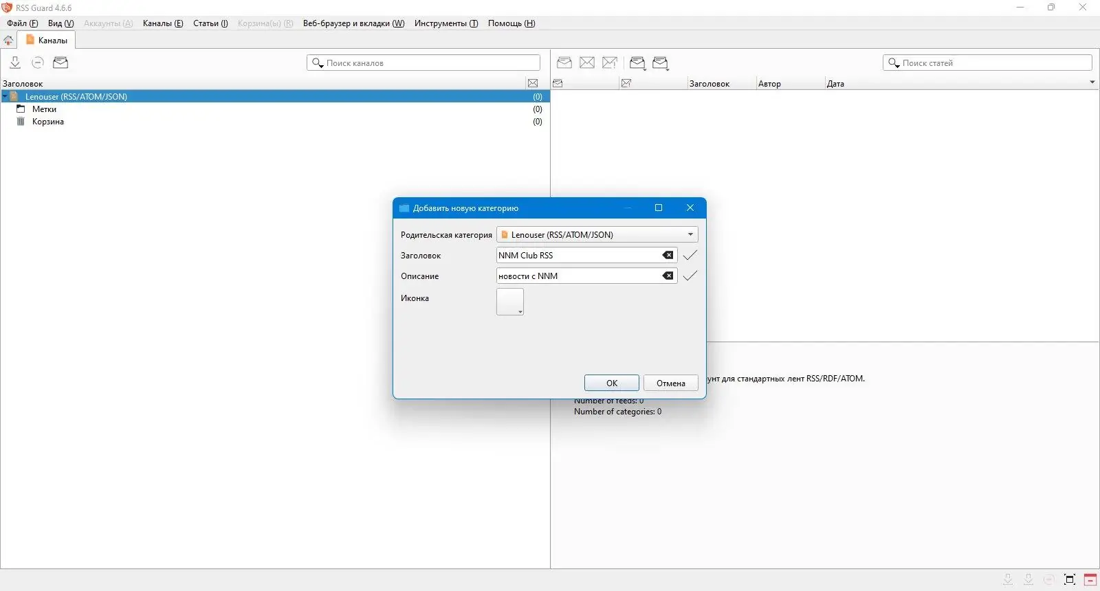- Настраиваемые параметры обновления, включая автоматическую проверку лент при запуске и через заданные интервалы, экономят время пользователя.