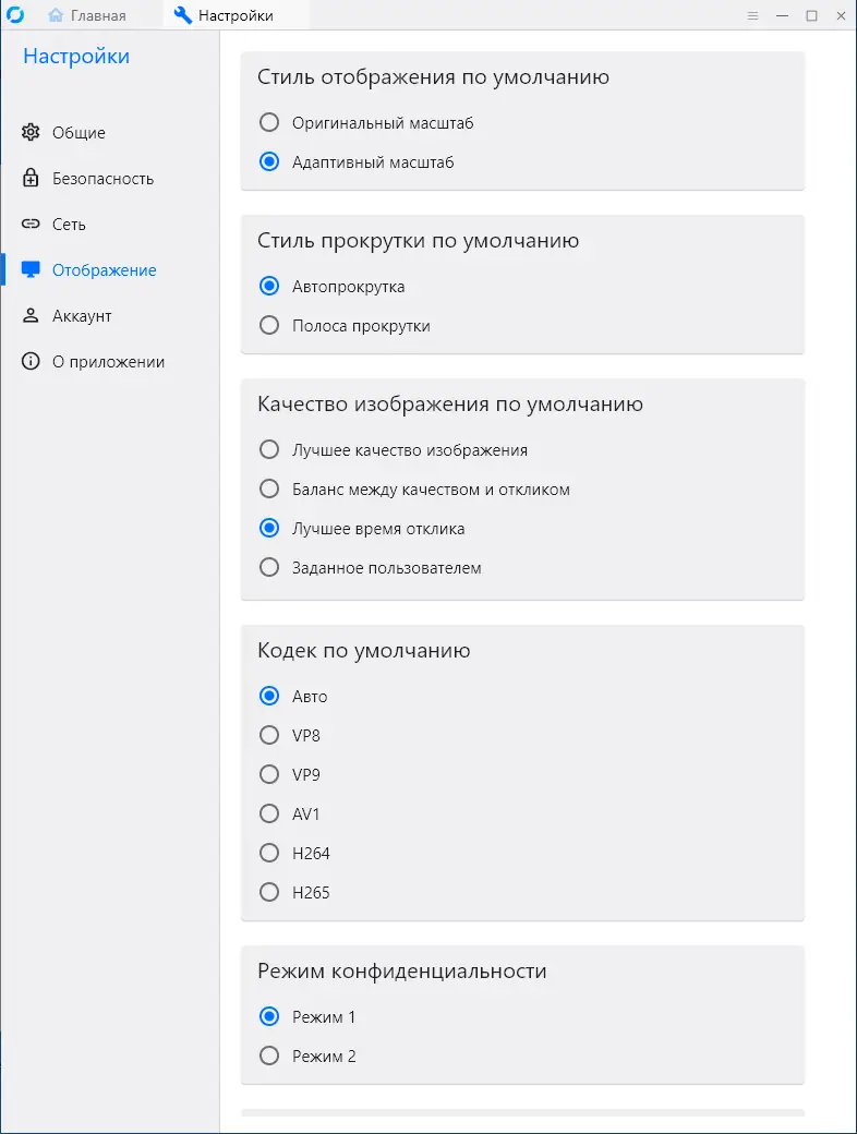 - Возможность настройки качества изображения и битрейта для оптимизации скорости соединения
