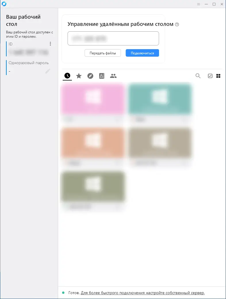Для подключения к удалённому устройству необходимо установить RustDesk на оба устройства — управляющее и управляемое. Каждое устройство получает уникальный идентификатор и временный пароль, которые используются для установления соединения. Пользователь вводит ID и пароль в интерфейсе приложения, после чего получает доступ к рабочему столу или файловой системе удалённой машины.