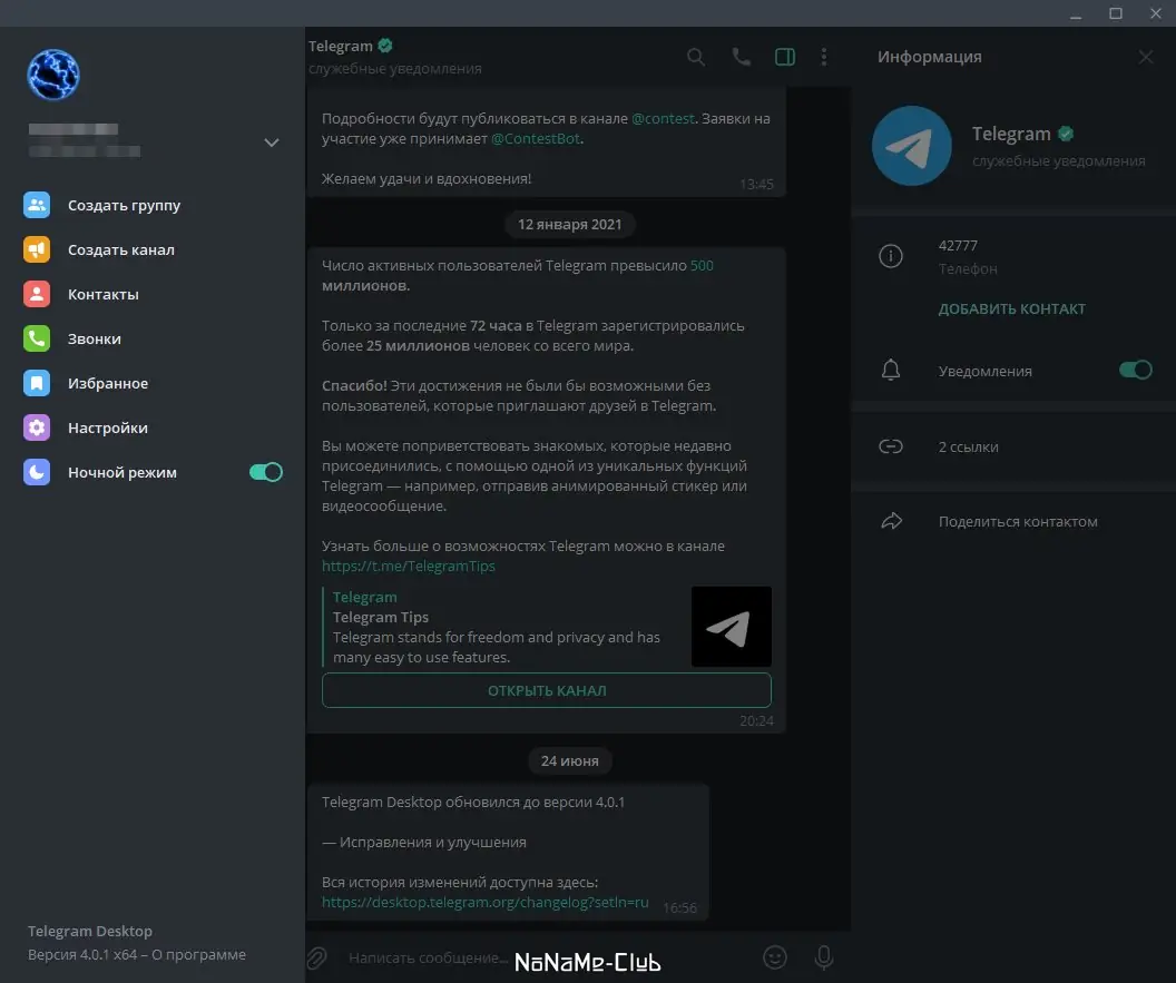 - Работа с группами до 200 000 участников и создание каналов для массовой рассылки