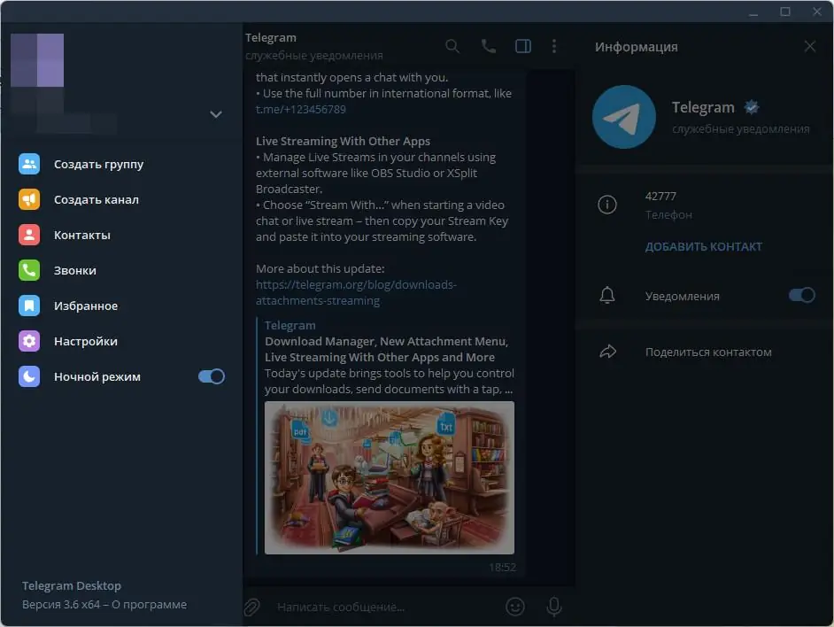 Telegram Desktop — это удобное приложение для обмена сообщениями, совмещающее в себе функции мессенджера и облачного хранилища. Оно позволяет отправлять текстовые сообщения, медиафайлы, документы и организовывать групповые чаты с высокой степенью защиты. Программа синхронизируется между устройствами и работает без задержек благодаря распределённой архитектуре серверов.