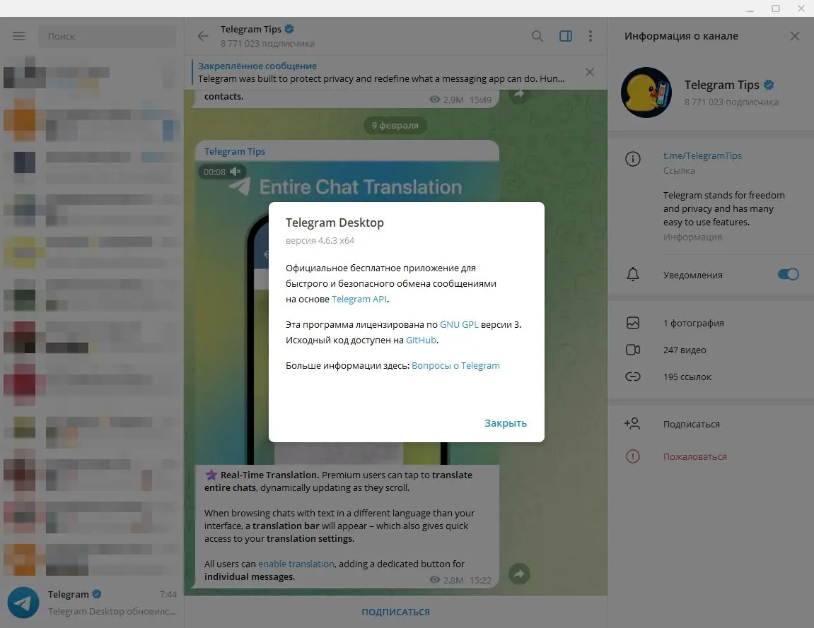 Telegram Desktop сочетает в себе безопасность, высокую производительность и удобство интерфейса, что делает его незаменимым инструментом в повседневной коммуникации.