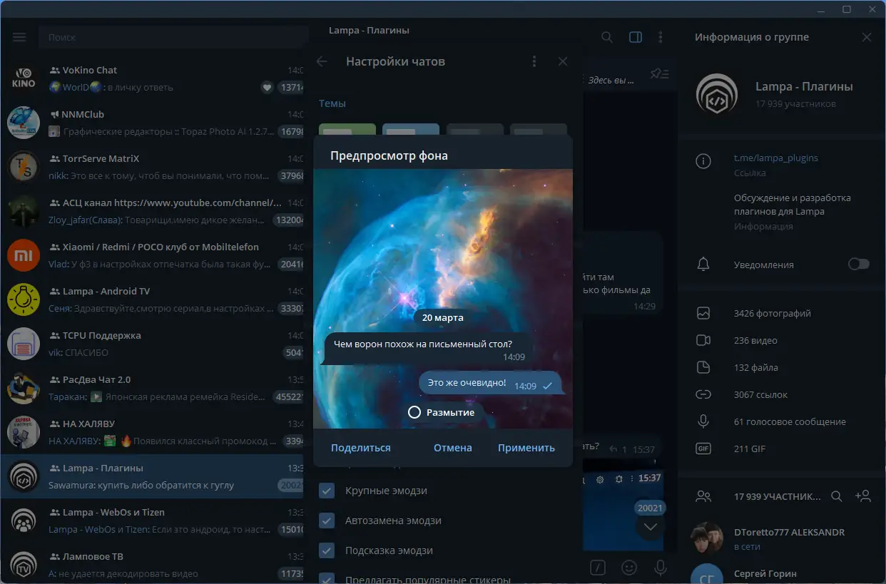 Программа сочетает в себе высокую скорость работы, продуманный интерфейс и расширенные функции для личного и корпоративного использования. Поддержка тем, возможность настройки уведомлений и встроенный медиаплеер делают общение более комфортным. Telegram Desktop активно развивается, регулярно получает обновления и улучшения.