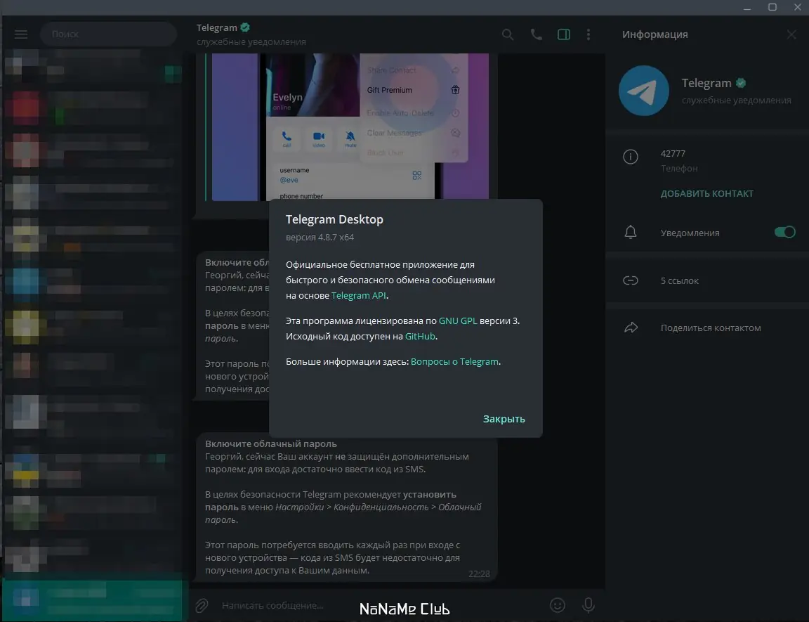 Telegram Desktop хранит все данные в зашифрованном виде и не передаёт их третьим лицам.