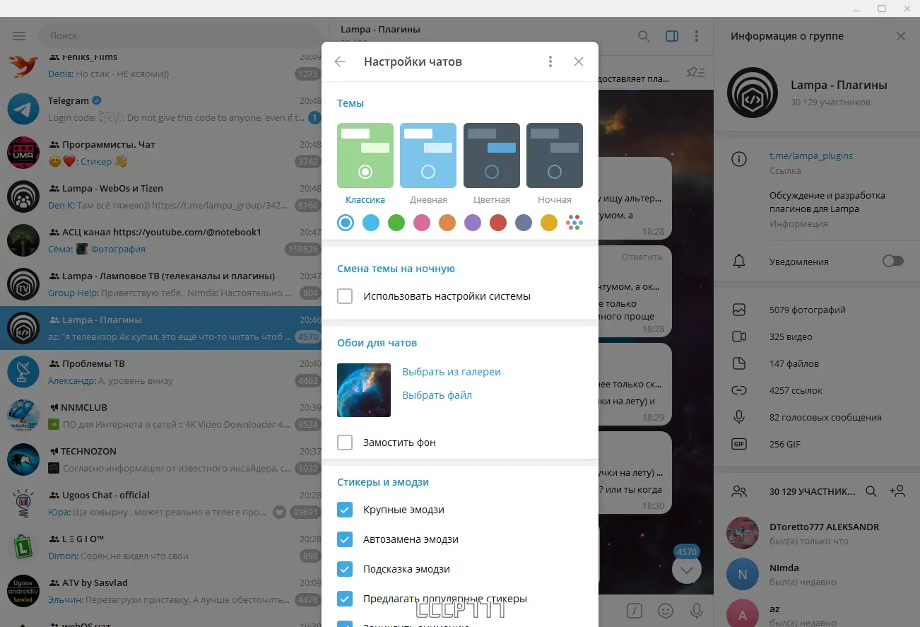 - Полная совместимость с другими версиями Telegram на смартфонах и планшетах