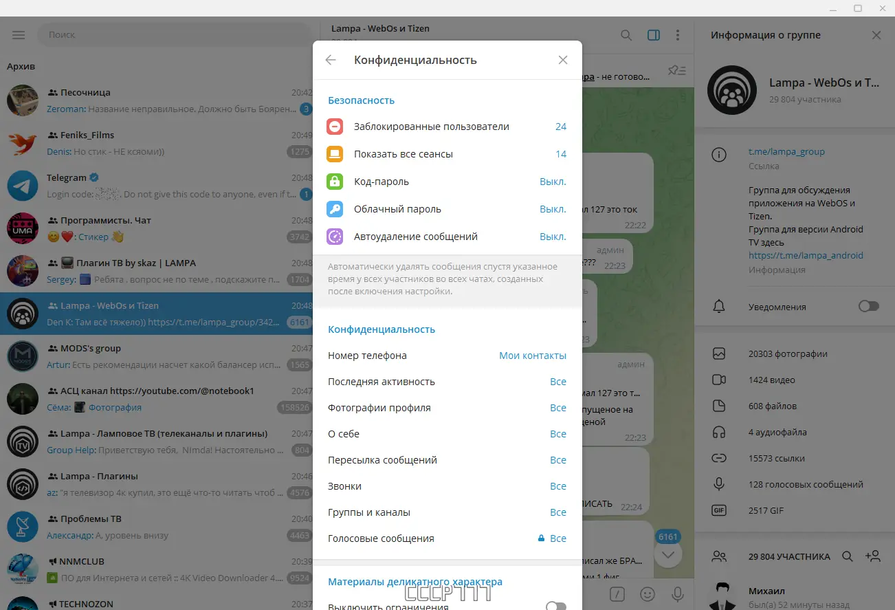 - Возможность создания групп и каналов с расширенными настройками доступа