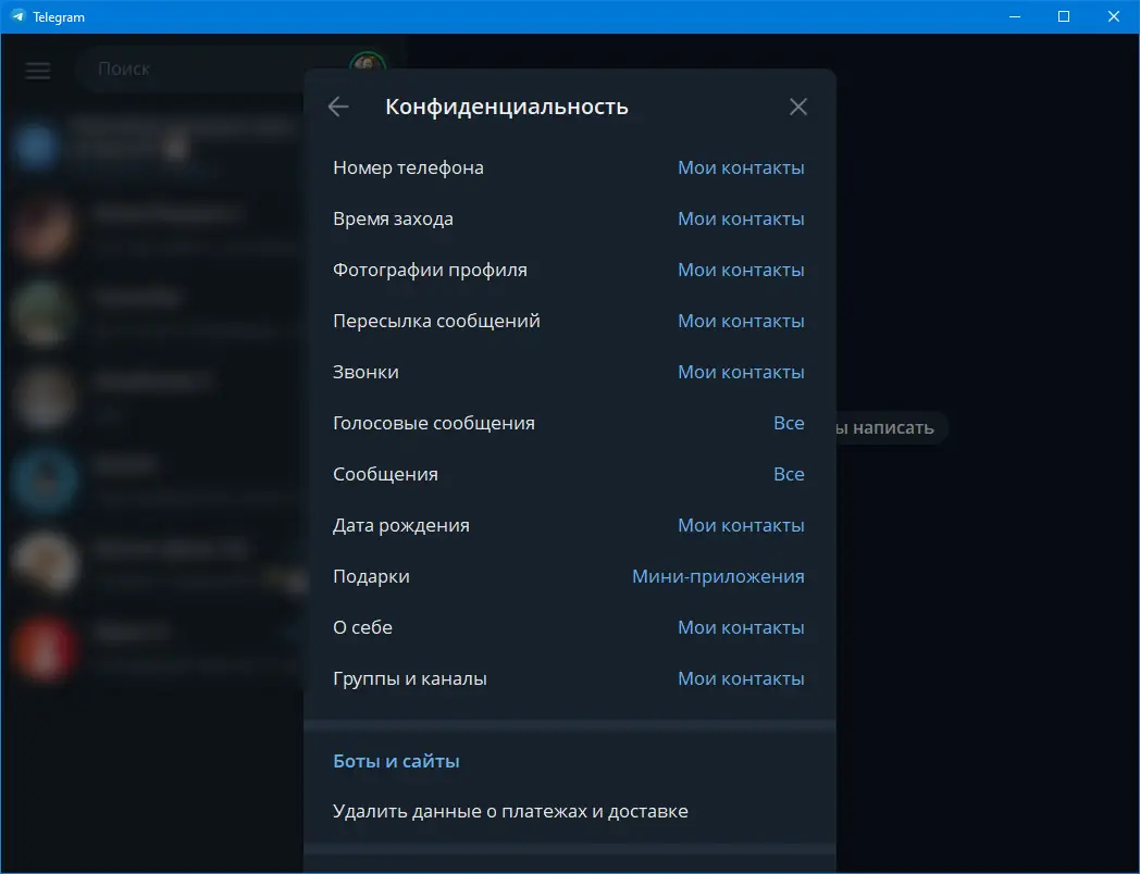 - Встроенные инструменты позволяют управлять конфиденциальностью: настройка таймера уничтожения сообщений, двухфакторная аутентификация и скрытие активности в сети.