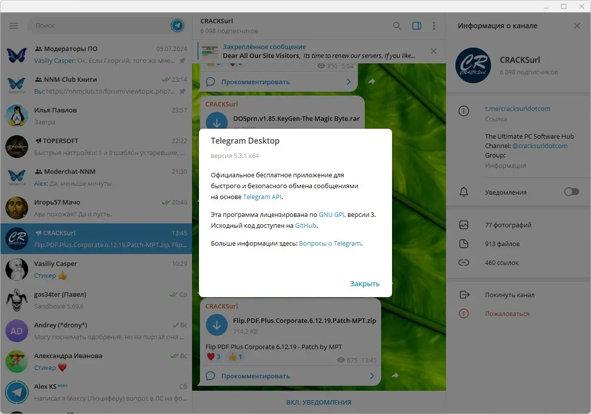 Telegram Desktop — это надежный и быстрый мессенджер с поддержкой множества устройств, позволяющий обмениваться сообщениями, файлами и медиаконтентом с высоким уровнем шифрования. Приложение работает на различных операционных системах, включая windows 10 и windows 11, и обеспечивает полную синхронизацию данных между устройствами. Благодаря облачному хранилищу пользователи получают доступ к перепискам и файлам в любое время и с любого компьютера.