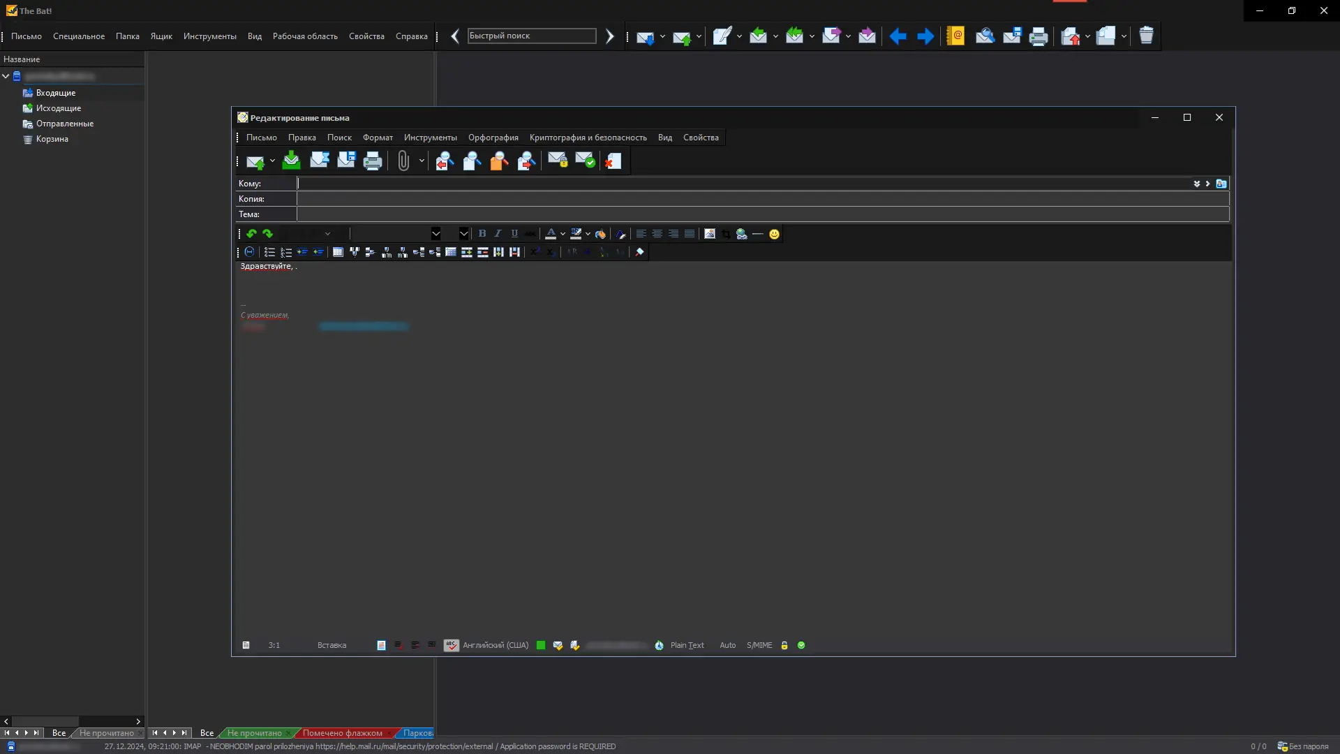 Каждое письмо обрабатывается с учётом настройки безопасности, что делает The Bat одним из самых защищённых почтовых клиентов на рынке.