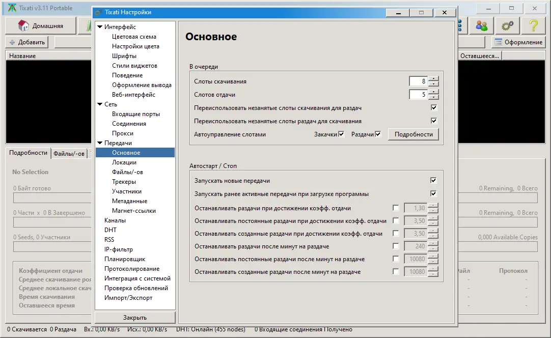 Одним из главных преимуществ Tixati является его высокая производительность при низком энергопотреблении и нагрузке на процессор. Программа быстро устанавливает соединения, эффективно распределяет ресурсы и позволяет тонко настраивать поведение клиента в зависимости от текущих задач. При этом интерфейс остаётся понятным даже для новичков, особенно после активации русского языка.