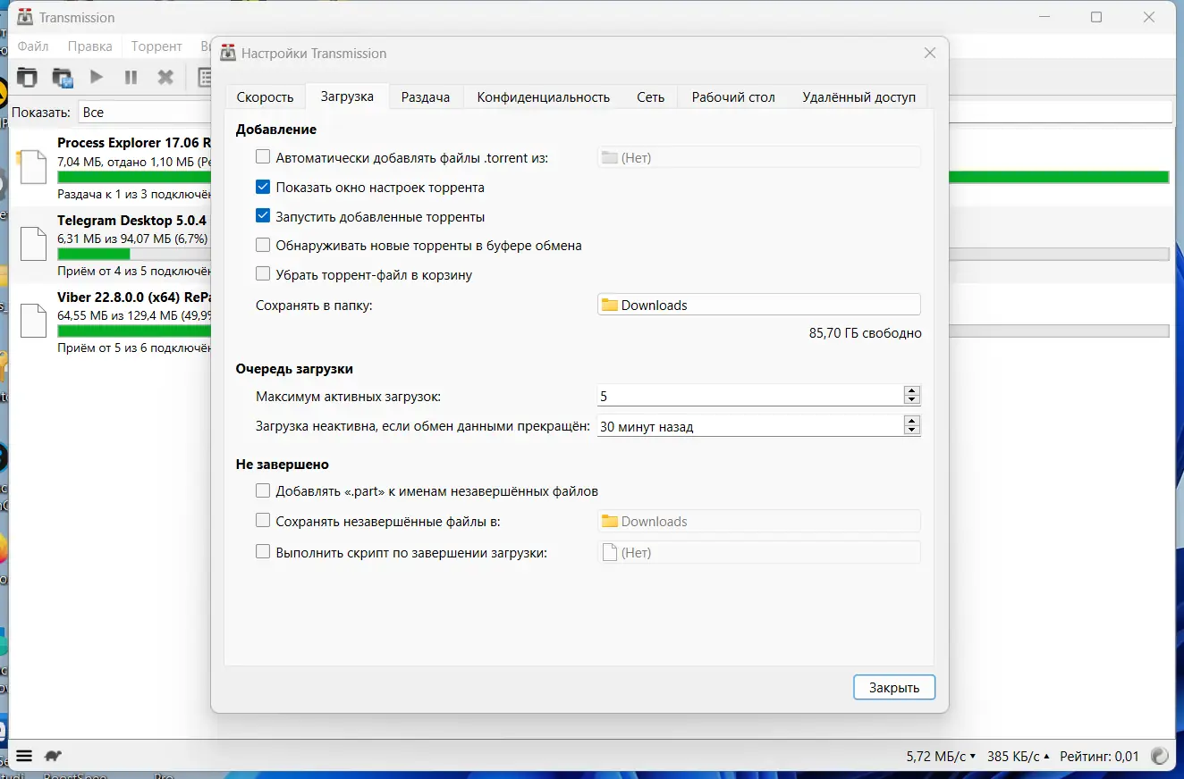 Как пользоваться Transmission