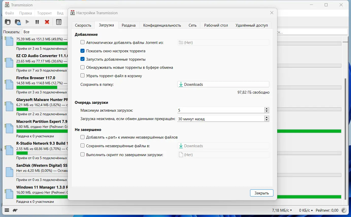 Как пользоваться Transmission