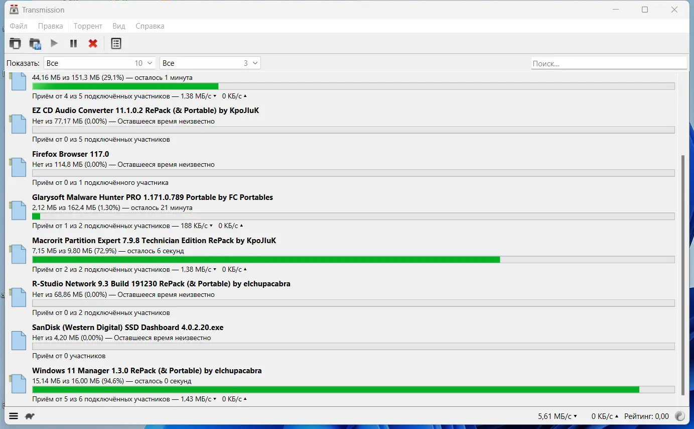 Transmission — это легковесный и эффективный клиент для работы с торрентами, разработанный с акцентом на минимальное потребление ресурсов и простоту интерфейса. Программа поддерживает ключевые функции BitTorrent-сети, включая шифрование, создание раздач и управление через веб-интерфейс. Идеально подходит для пользователей, ценящих стабильность и отсутствие избыточных элементов.